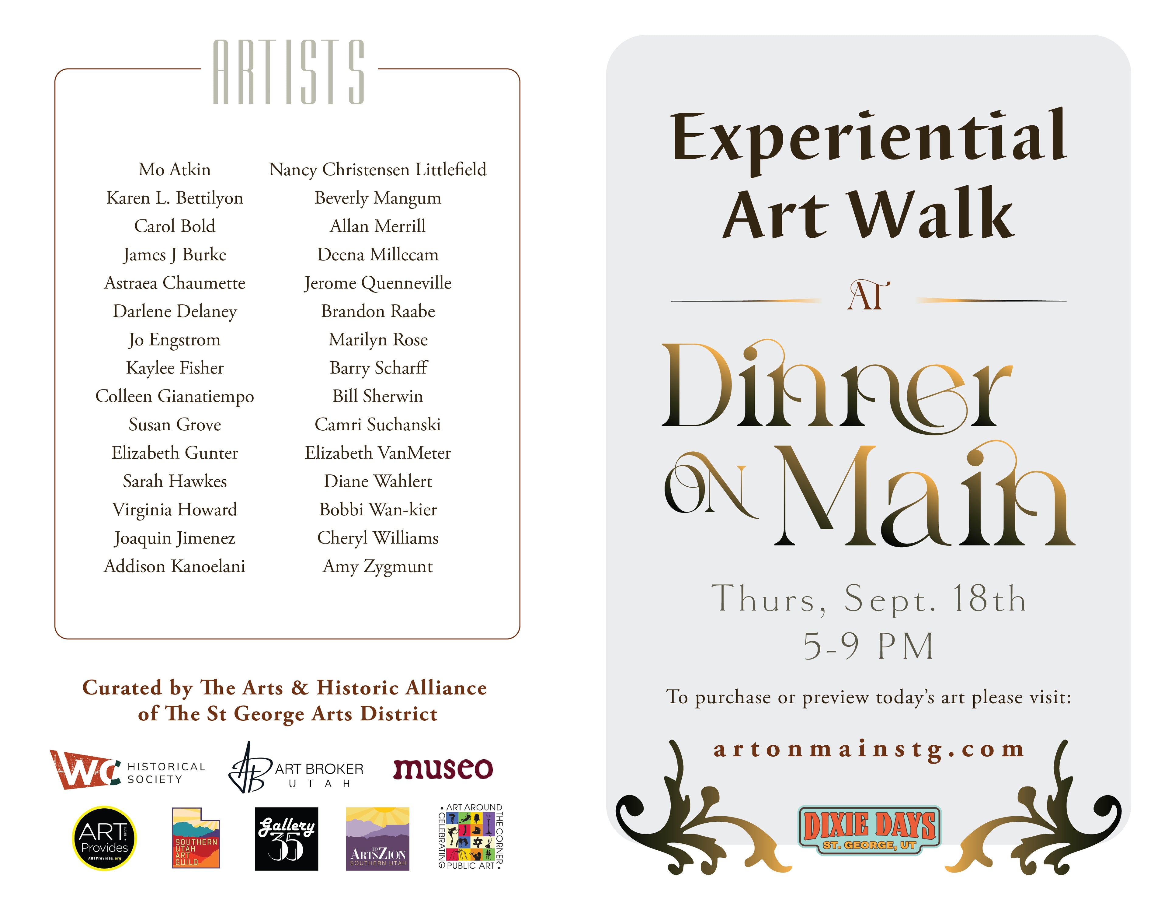 This event is presented by the newly-formed Arts & Historic District Alliance of St. George—a collaboration of artists, businesses, and cultural leaders working together to reimagine downtown as a place where history and creativity meet.